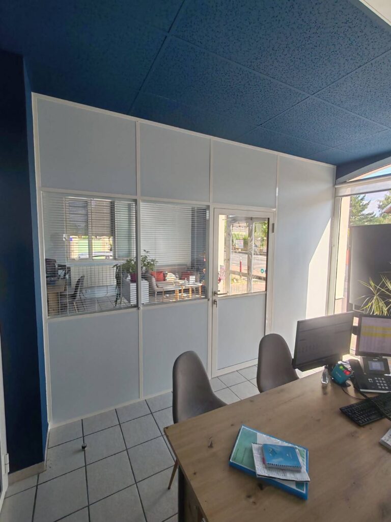 Ces cloisons, s’étendant du sol au plafond, créent une séparation élégante tout en préservant la sensation d’espace. Elles sont particulièrement appréciées dans les bureaux pour délimiter les espaces de travail tout en favorisant la communication visuelle.